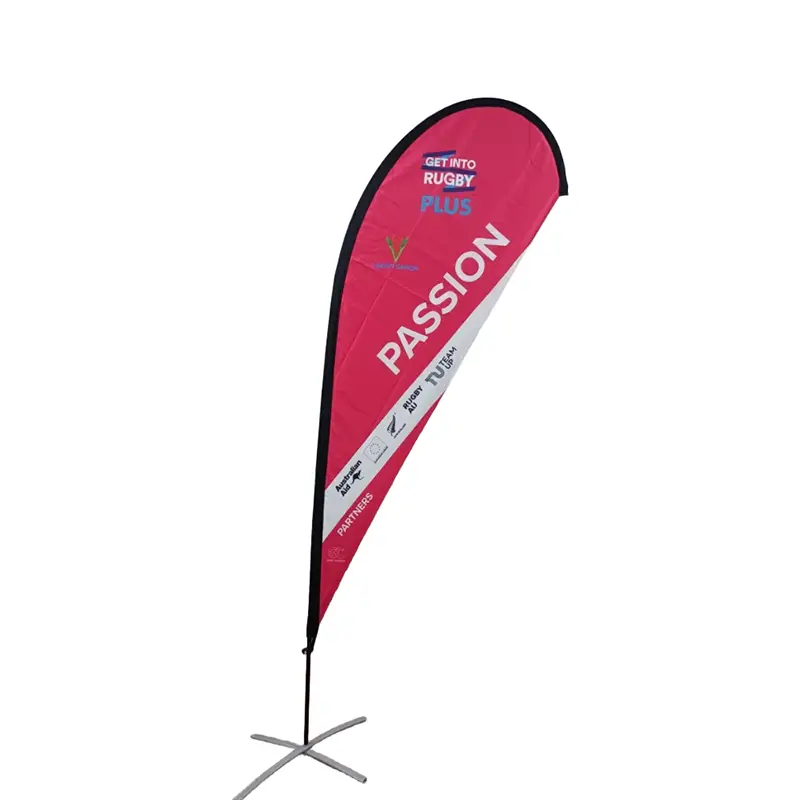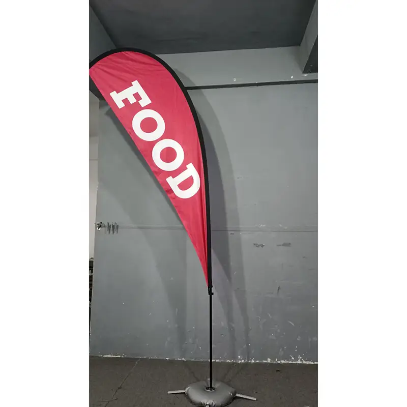 Les drapeaux de plage en forme de larme sont principalement utilisés dans les événements promotionnels en plein air et sur certains sites publicitaires, tels que les présentations de produits dans les centres commerciaux, les installations promotionnelles dans les supermarchés, les panneaux publicitaires pour les hôtels et les immeubles de bureaux, l'affichage de certaines activités scolaires, l'identification des participants à des événements sportifs et les panneaux publicitaires pour les sponsors.