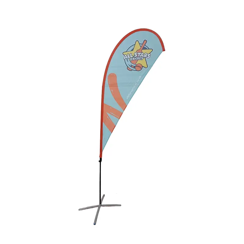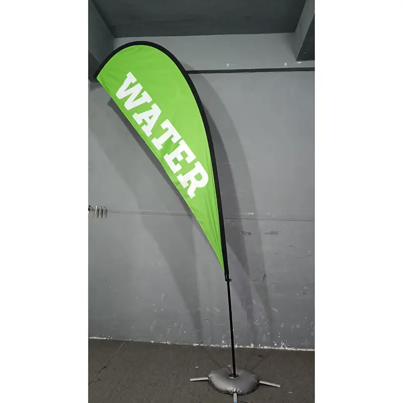 (4) Drapeau de plage en forme de larme, large gamme de bases disponibles pour s'adapter à différentes applications.